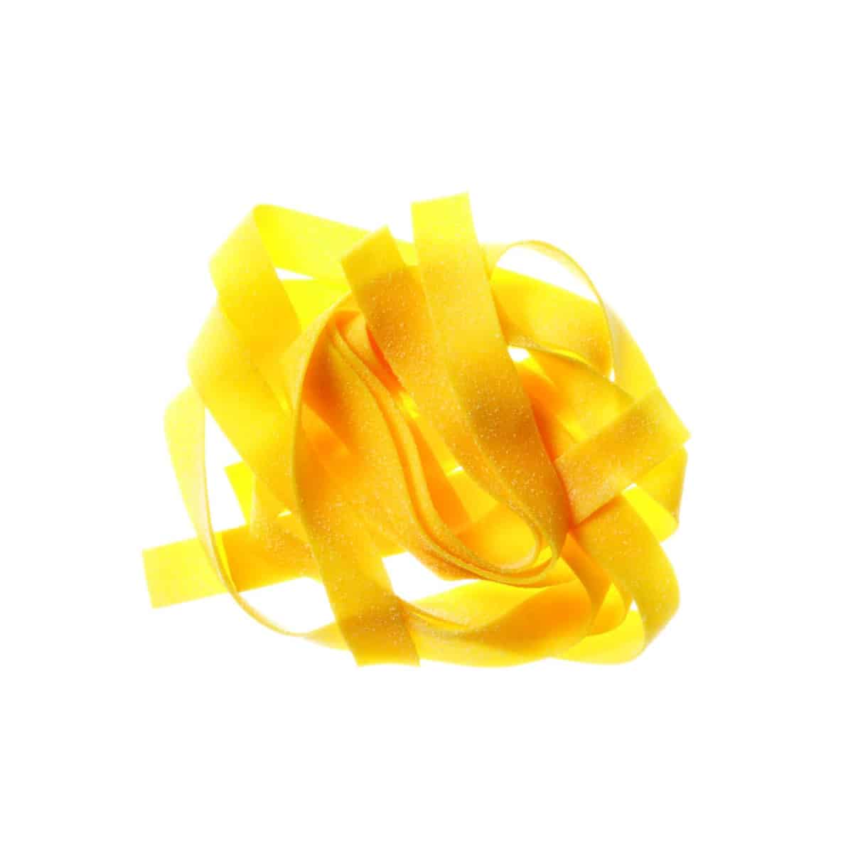 Pappardelle gehören zu den klassischen Nudelformen Mittelitaliens. Ihr Name leitet sich vom Verb „pappare“ – verschlingen – ab, was bereits auf ihren kräftigen Charakter verweist. Mit einer Breite von 10 mm und einer leicht rauen Oberfläche eignen sie sich ideal für Saucen mit Struktur, etwa Ragù oder Pilzrahm.