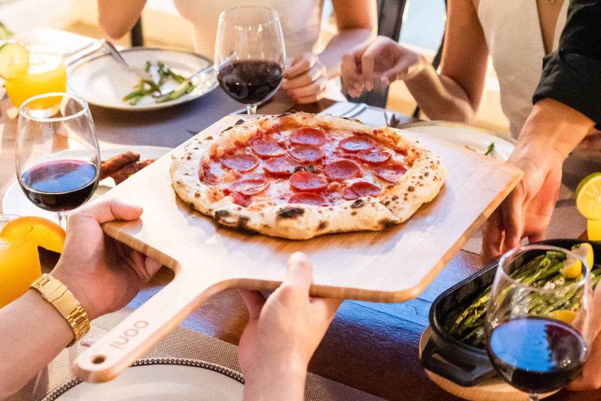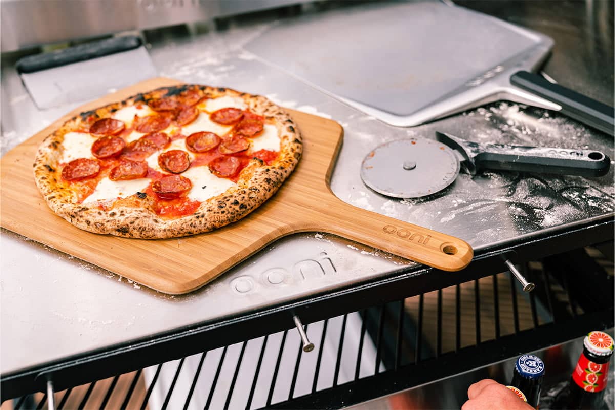 Mit dem leichten und langlebigen Ooni Pizzaschieber, Brot- und Servierbrett kann man Pizzen und Brote vollkommen mühelos in den Ofen schieben. Dank der feuchtigkeitsbeständigen, glatten Bambusoberfläche klebt der Teig nicht fest. So kann man den Schieber auch super als Servier- und Schneidebrett verwenden.