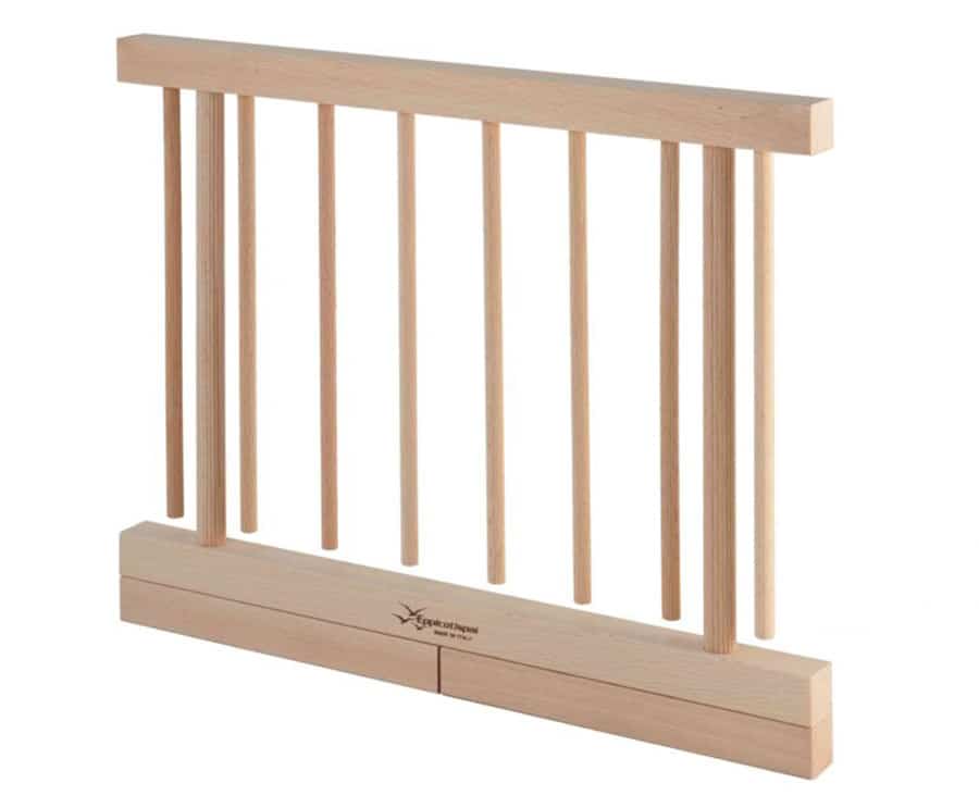 Der 8-armige Holzständer aus naturbelassenem Buchenholz ist ideal zum Trocknen langer Nudeln wie z.B. Spaghetti, Tagliatelle oder Tagliolini. Der Ständer besteht aus 2 Teilen und ist schnell zusammengebaut. Wenn er nicht benötigt wird, kann er ganz einfach platzsparend auseinander genommen und flach in einer Schublade verstaut werden.