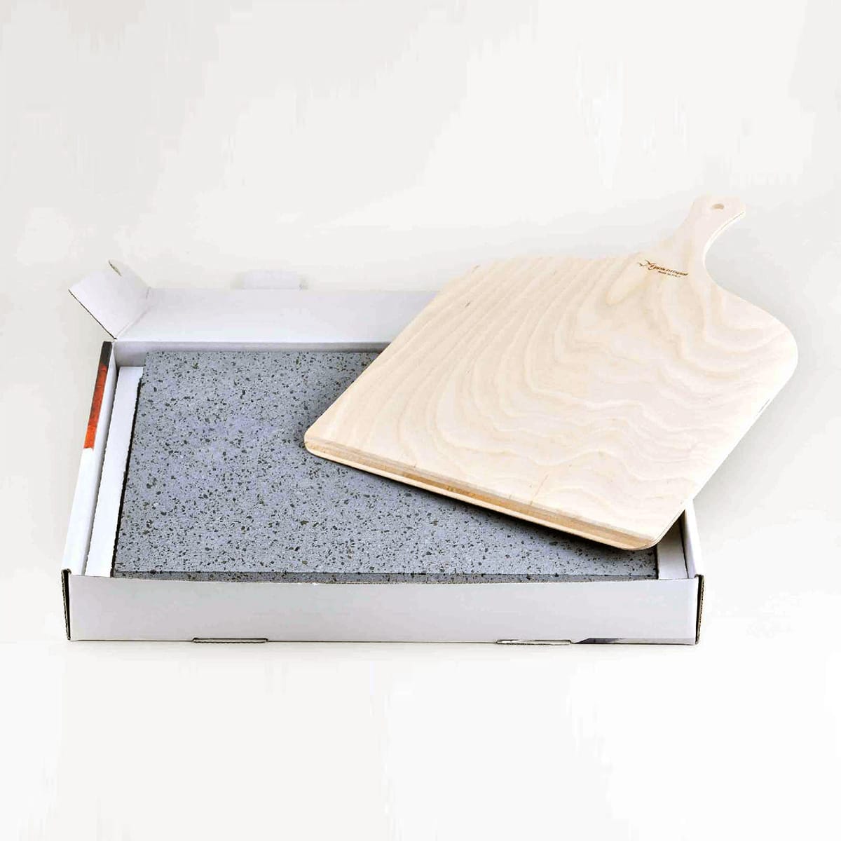Lieferumfang: Lavagestein-Pizzastein, Pizzaschieber aus Holz